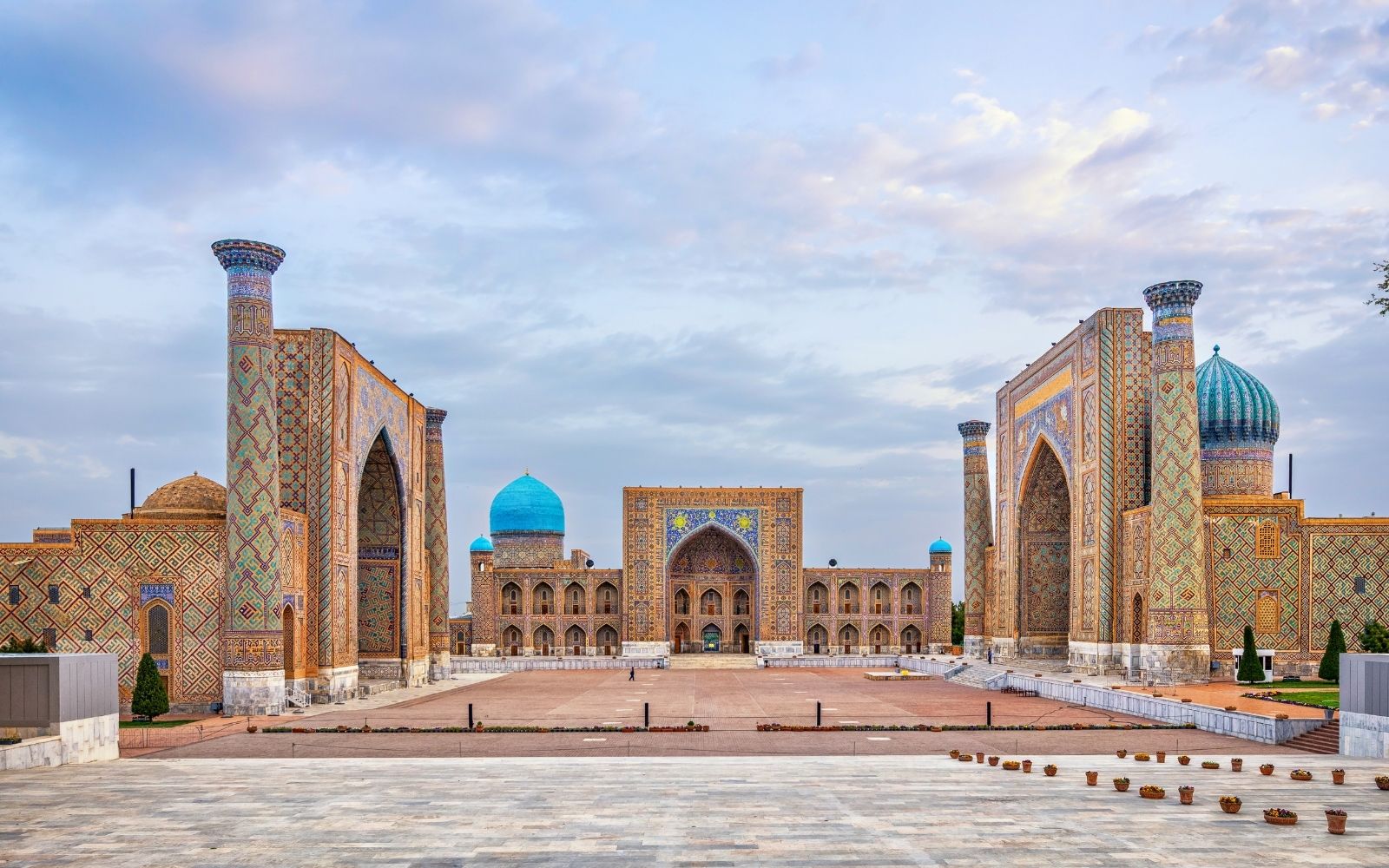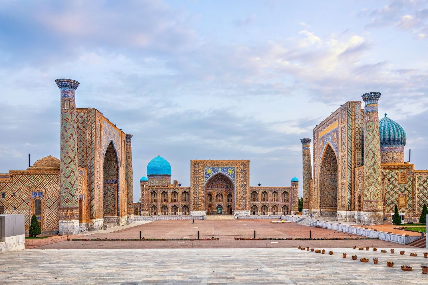 Petit déjeuner matinal. A 07h00 transfert de votre hôtel à la gare. Le train à grande vitesse « Afrosiyob » part de Tachkent à 08h00 et arrive à Samarkand à 10h10 (300 km). Votre guide et chauffeur vous attendront à la gare pour commencer la visite de la ville de Samarcande. Visitez la spectaculaire place du Registan, les vestiges de la mosquée Bibi-Khahum, l’observatoire Ulugbek, la nécropole Shakhi-Zinda, le bazar central de Samarkand et le mausolée Gur-Emir, authentique sanctuaire de Tamerlan. Temps libre l’après-midi. Sur la nuit à l’hôtel.